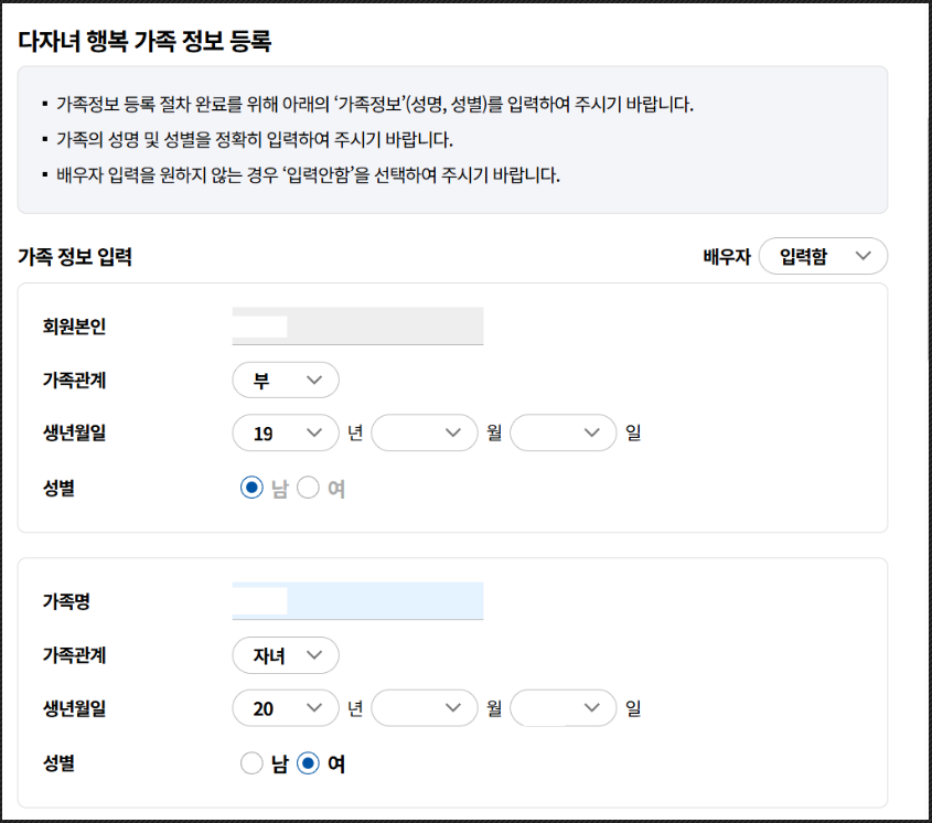 다자녀 행복 신청하기.