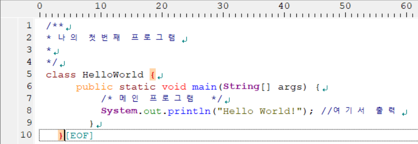 System.out.println(“HelloWorld!”); /* HelloWorld를 출력한다.