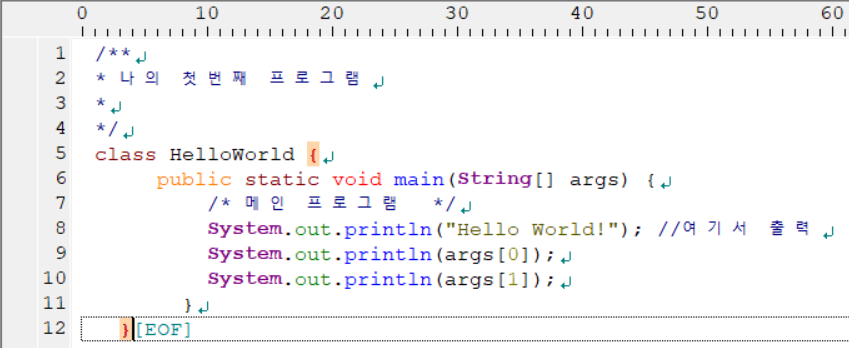 System.out.println(“HelloWorld!”); // HelloWorld를 출력한다.