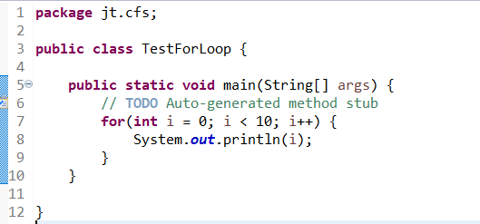그다음 i의 조건을 10보다 작게 설정했다. i가 10보다 작으면 for블록을 실행하게 된다.