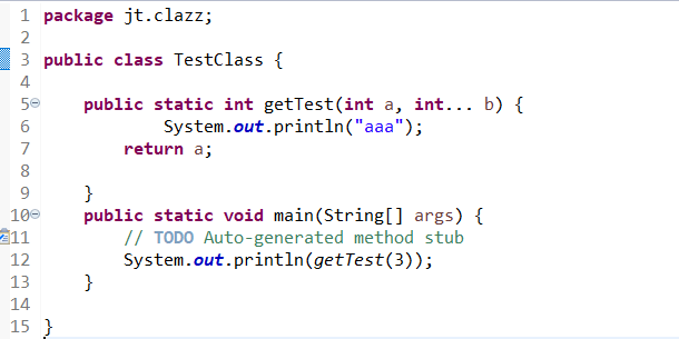 예제를 보면 getTest 메서드에서 int형 가변인수를 사용했다. 특이한 점은 가변 인수 b를 선언했지만 값을 넣지 않아도 오류가 나지 않고 실행된다는 점이다.