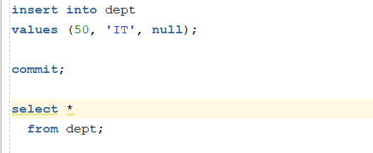 먼저 dept테이블의 loc 컬럼에 NULL값을 넣고 입력합니다.