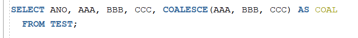 COALESCE를 사용하면 1행은 AAA가 값이 있으니 해당 값인 1