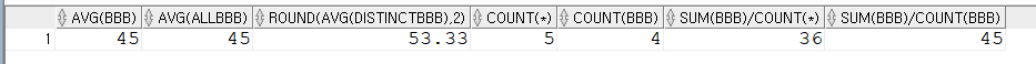 하지만 NULL도 건수에 포함 시킨다면 5로 나누게 되므로 평균이 36으로 줄어듭니다.