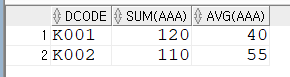 위 결과를 보면 ‘K001’과 ‘K002’에 대한 합계를 구한 결과입니다.
