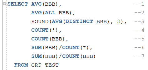 기본적으로 AVG(표현식)으로 사용하며 중복된 숫자는 빼고 평균을 구하고자 할 때는