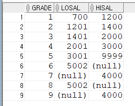 Salgrade 테이블의 데이터를 확인해봅니다.