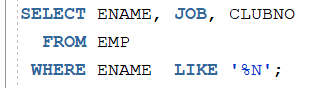 우선 원하는 컬럼 뒤에 LIKE 키워드를 사용합니다.