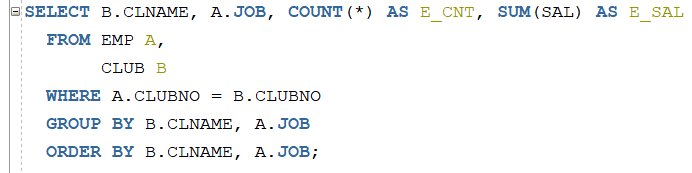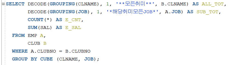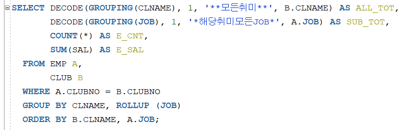하지만 동호회를 그룹핑해서 JOB의 소계를 구하고