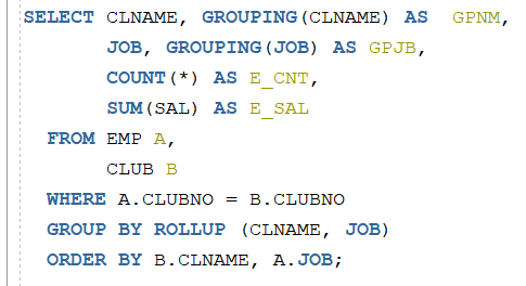 CLNAME 과 JOB에 대해 각각 소계를 구할 수도 있습니다.