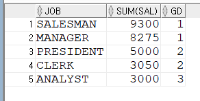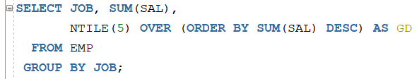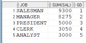 JOB을 GROUP BY 해서 JOB별로 OVER (ORDER BY SUM(SAL) DESC)