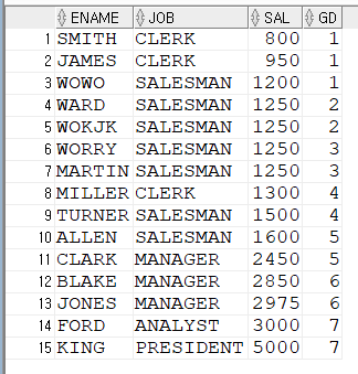 이번에는 GROUP BY를 사용하지 않고 총 15건 중 7개의 그룹으로 나눴습니다.