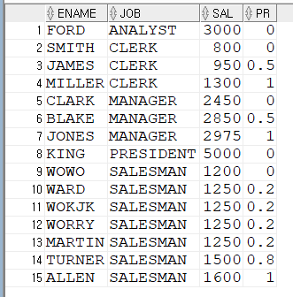 SALESMAN은 중복된 값이 있어서 0.86으로 같은 값이 조회되었네요.