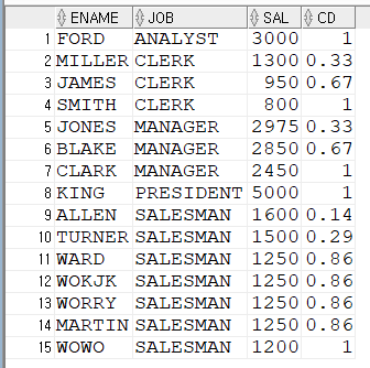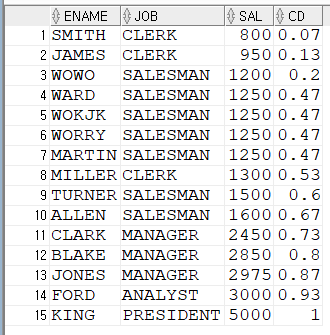 [HOW]오라클(ORACLE) 비율함수 사용하는 방법, 윈도우함수, NTILE(), RATIO_TO_REPORT(), PERCENT_RANK(), CUME_DIST()