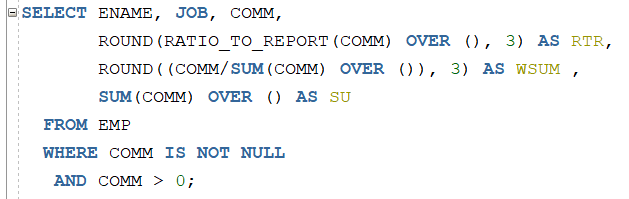 RTR을 보면 RATIO_TO_REPORT를 사용했는데 같은 결과가 같습니다.