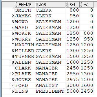 두 번째 4는 현재 행부터 앞의 4번째 SAL 행의 값을 가져옵니다.