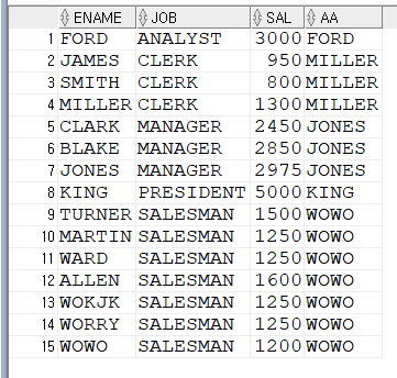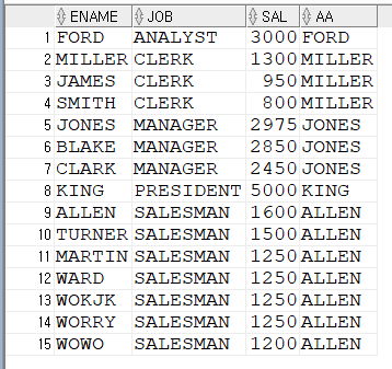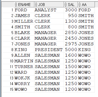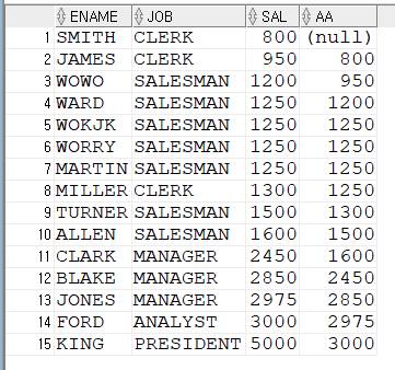 해당 그룹별로 마지막 ENAME이 조회됨을 알 수 있습니다.