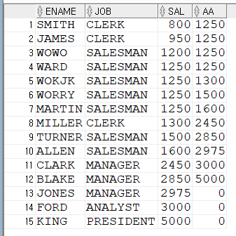소그룹은 JOB을 지정했습니다. (PARTITION BY JOB)