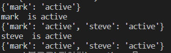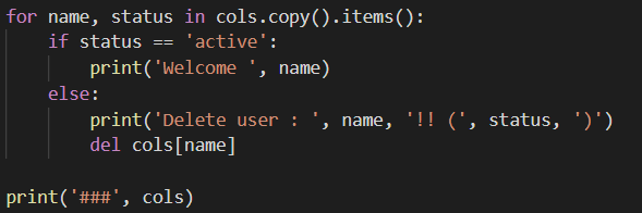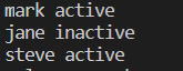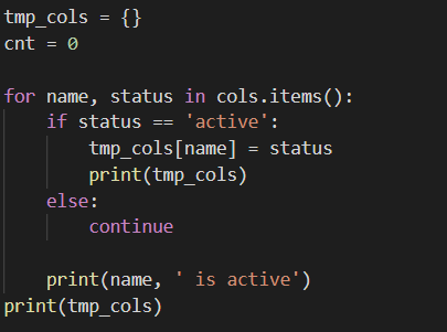 그래서 print(name, ' is active')는 active인 경우만 실행됩니다.