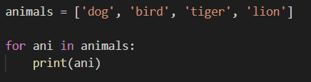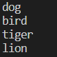 꺼낸값은 반복 순환하면서 'dog'부터 'lion'까지 순차적으로 ani라는 꺼낸값에