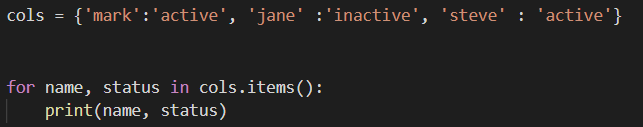 in 뒤에 컬렉션의 목록을 받기 위해 cols.items()로 메서드를 사용했습니다.