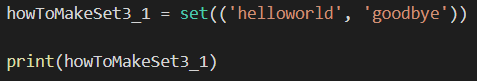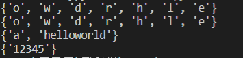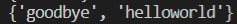 {'a', 'helloworld'}와 {'12345'}가 나왔습니다.