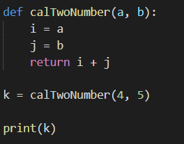 할당받은 내부 변수의 합을 결괏값으로 k에 할당합니다.