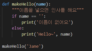 def를 타이핑하고 makeHello라는 이름을 만들었습니다.