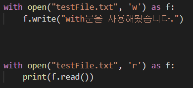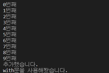 with문을 사용하면 위 예제에서 확인할 수 있듯이 close() 문을 사용하지 않았습니다.