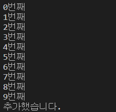이번 예제는 파일 모드를 추가('a')하는 기능으로 구현했습니다.
