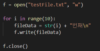 쓰기 모드로 파일을 열고 리턴 받은 파일 정보 f를 사용합니다.