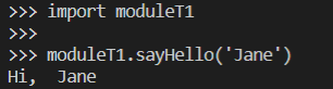 from moduleT1 import sayHello 또는 from moduleT1 import * 로