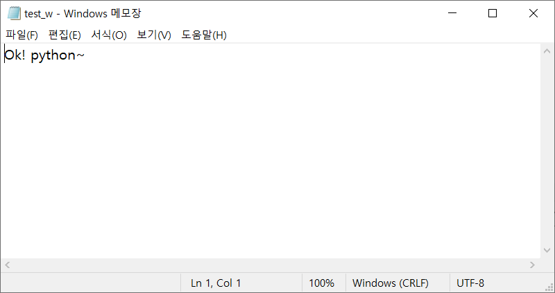 write() 함수를 사용해서 입력한 내용이 파일에 잘 저장되었습니다.