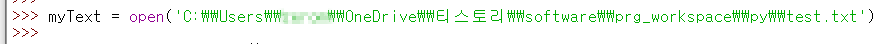 파일을 오픈한 myText변수에 read() 함수를 사용해서 내용을 읽어옵니다.