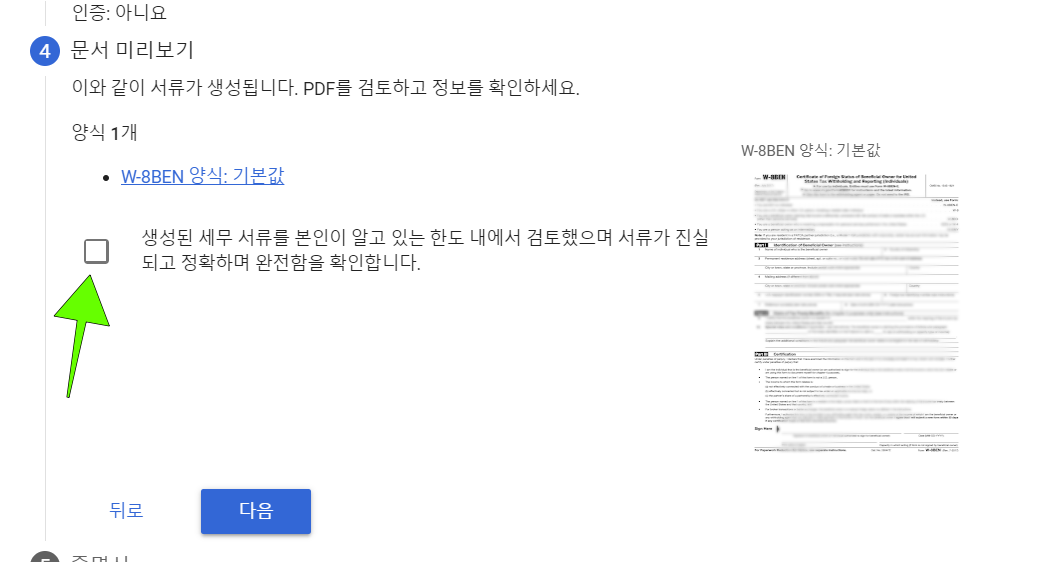 이제 W-8BEN 양식으로 이동을 클릭합니다.