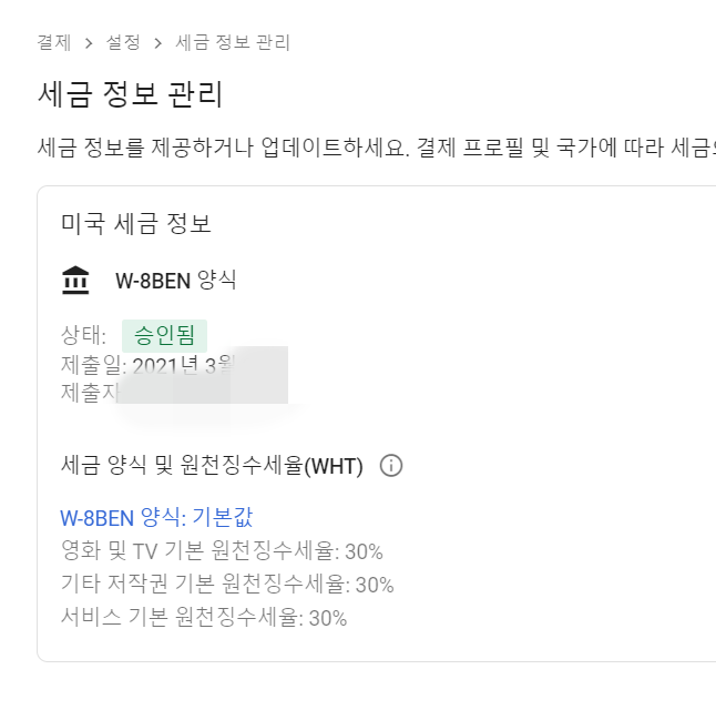미국에서 발생한 애드센스 수입에 대해서는 30%의 세율이 적용되는가 봅니다.