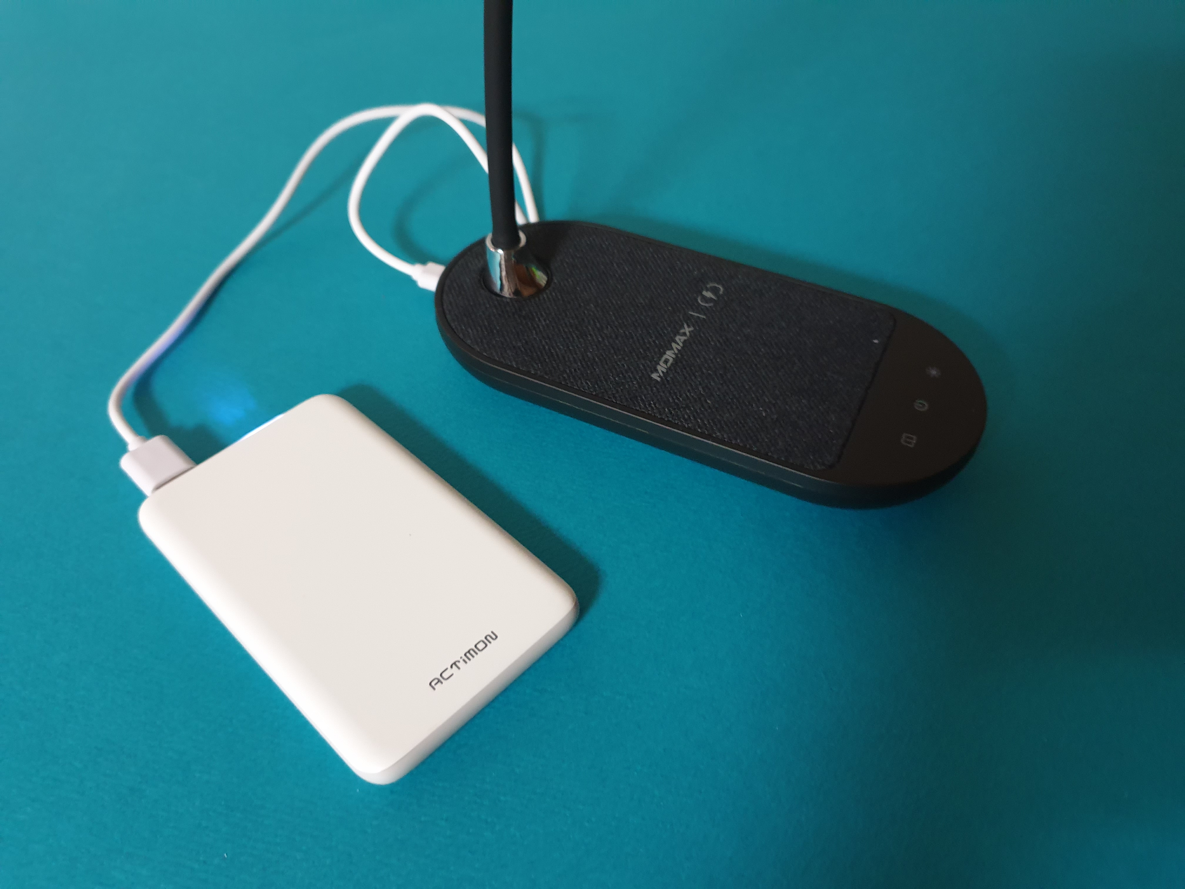전원 코드가 멀어서 보조배터리를 이용해 조명을 사용 중입니다.