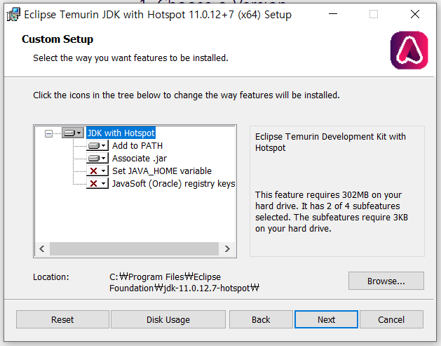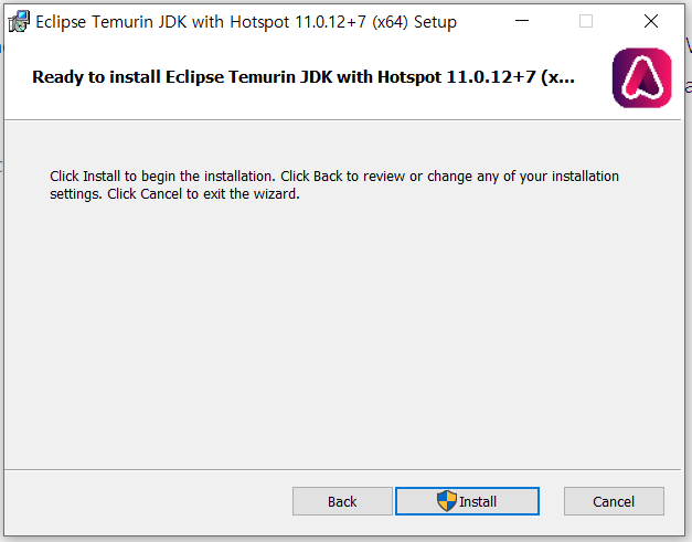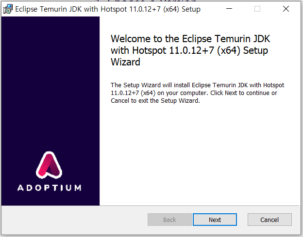 영어를 읽어보니 Eclipse Temurin JDK with Hotspot 11.0.12+7(x64)로 설치된단다.