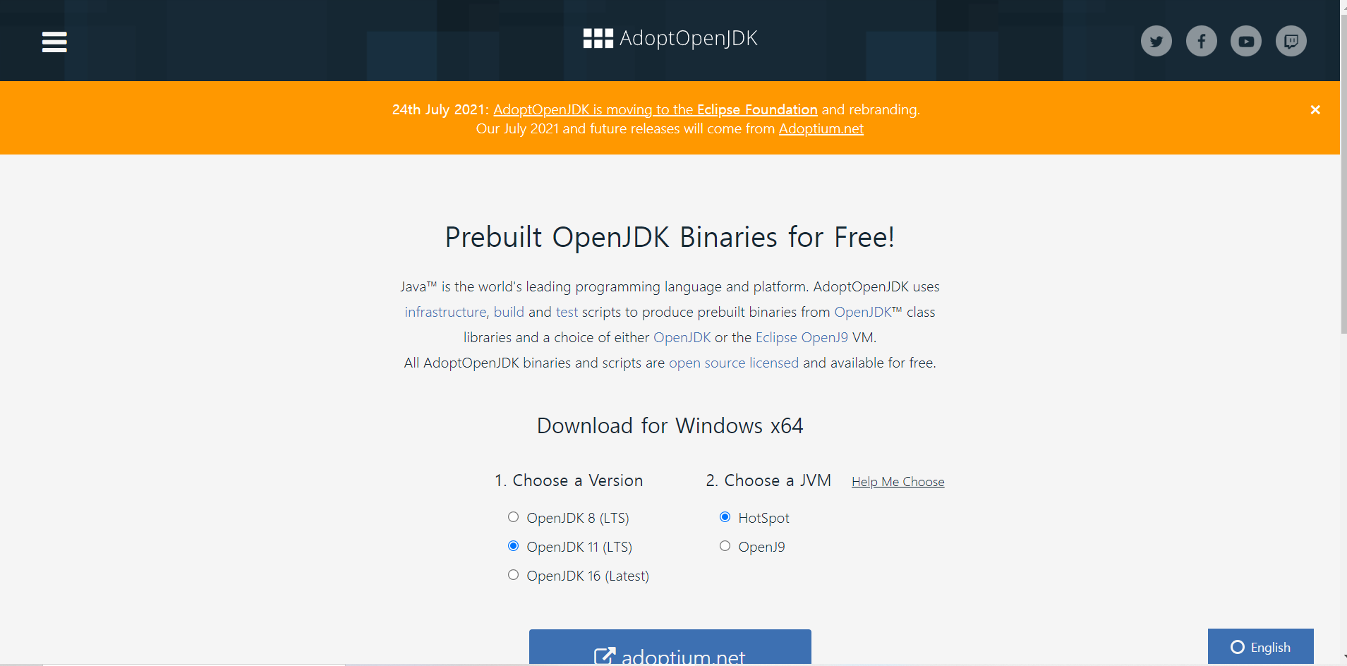 그래서 AdoptOpenJDK를 클릭해서 설치해보자.