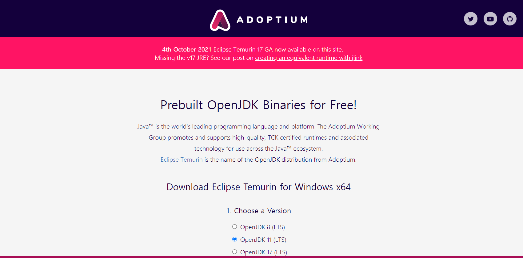 adoptium.net으로 클릭해서 이동~