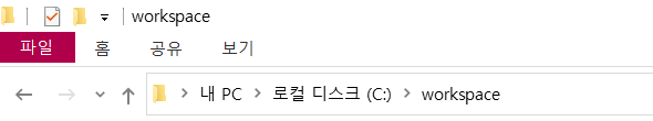 이렇게 C 드라이브에 workspace 폴더를 생성한다.