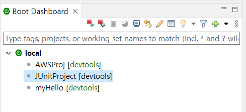 이제 Boot Dashboard에서 local 하단에 방금 만든 JUnitProject를 선택하고