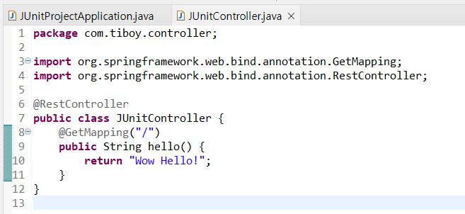 JUnitController가 생성되면 @RestController와 @GetMapping("/")을