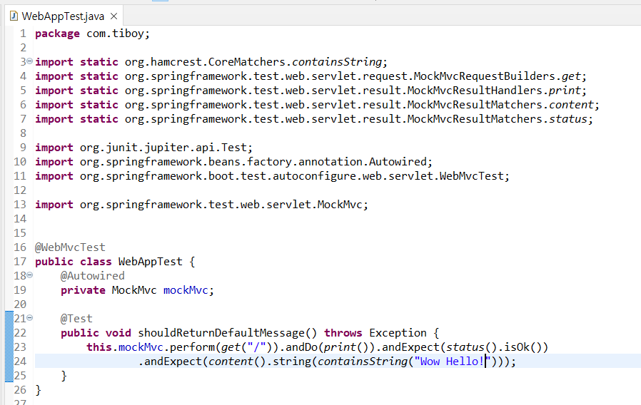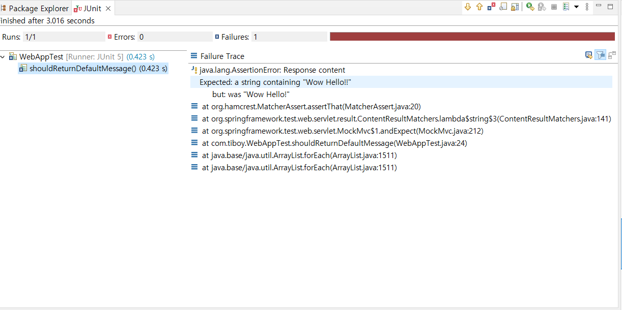 .andExpect(content().string(containsString("Wow Hello!")) 이 부분은