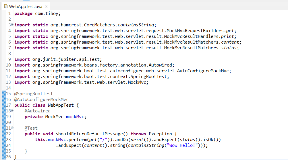 src/test/java라는 디렉터리에 com.tiboy가 있고
