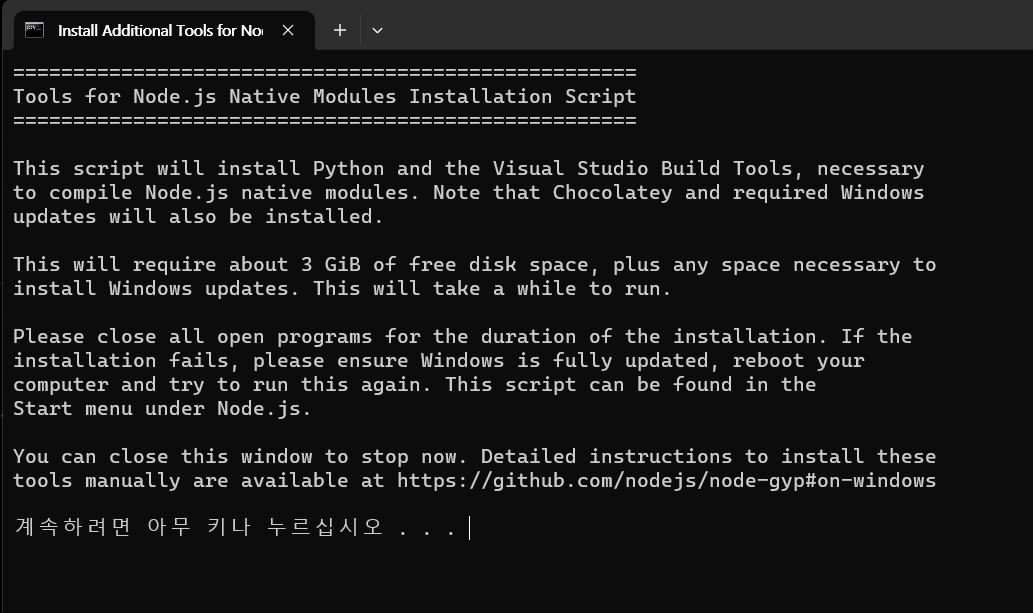 이제 설정이 끝났으니 node.js를 설치할 수 있습니다.