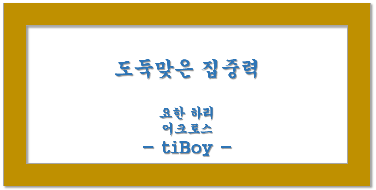 스마트 폰( 스마트 기기 ...)은 상당한 우리 능력을 훔쳐가고 있다. 잘 활용하면 좋겠지만 정말 집중력이 필요한 경우에 스마트 폰이 방해를 한다. 메일 알림, 메시지 알림, SNS 알림등이 우리의 집중력을 훔치고 있다. 우리는 우리 인생에서 정말 중요한 집중력을 도둑맞고 있는 것이다. 아이들을 키우는 부모들은 정말 공감할 거라 생각한다. 아이들이 소중한 성장기에 미래를 준비하기 위한 집중력을 도둑맞고 있는 것이다. 집중력을 키우기 위해서는 어떻게 해야 할까?