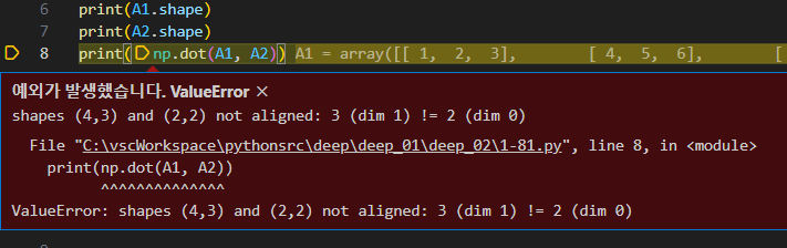행렬곱을 할 경우 주의할 점이 있다.
