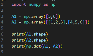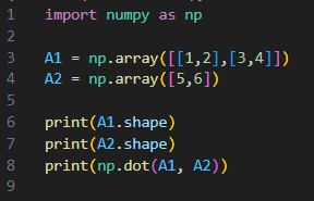6번 라인을 보면 numpy 함수 dot을 사용하고 있다. (np.dot())