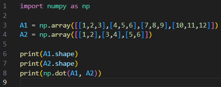 행렬의 곱셈, 파이썬 넘파이 (Python, Numpy)